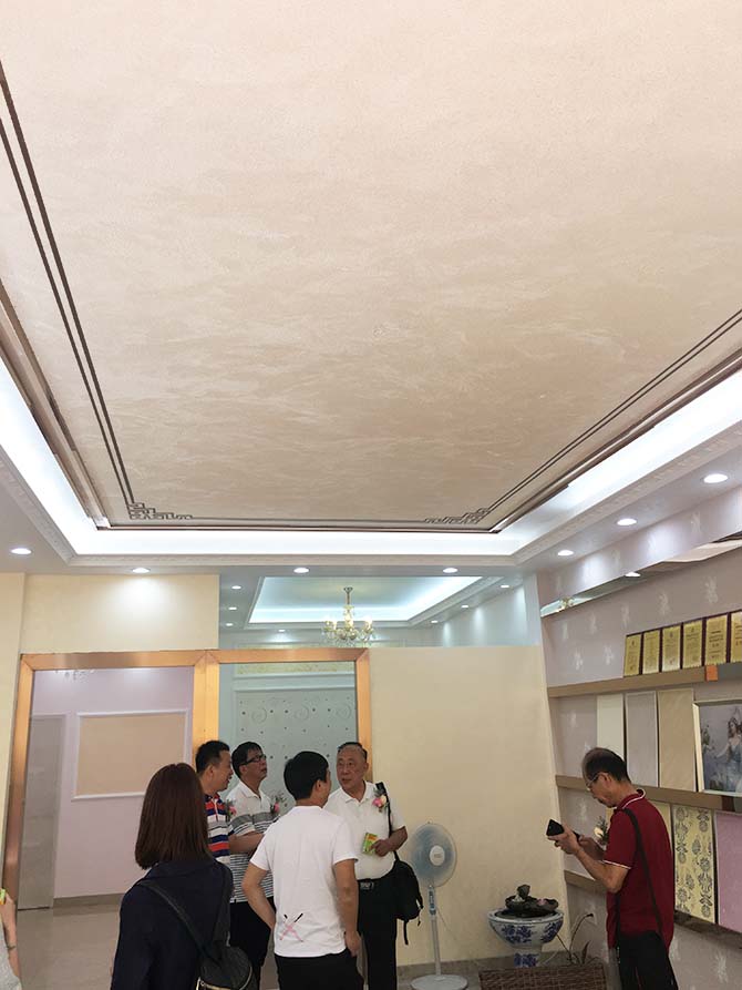 为了进一步的确认,中山加盟商来到箭牌涂料公司实地考察,看到公司内部墙面装饰,墙身立面、天花吊顶、样板展厅全面采用箭牌艺术涂料,墙面与艺术涂料的融合,不用增加任何装饰,轻松提升空间档次,让他眼前一亮,切身体会到艺术涂料的魅力,也更加坚定他加盟箭牌艺术涂料的想法。