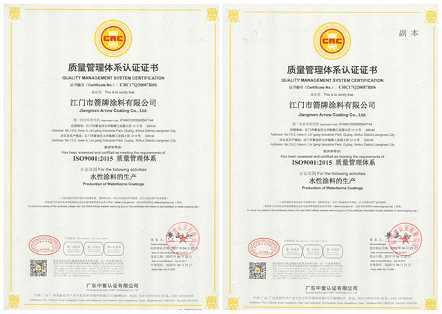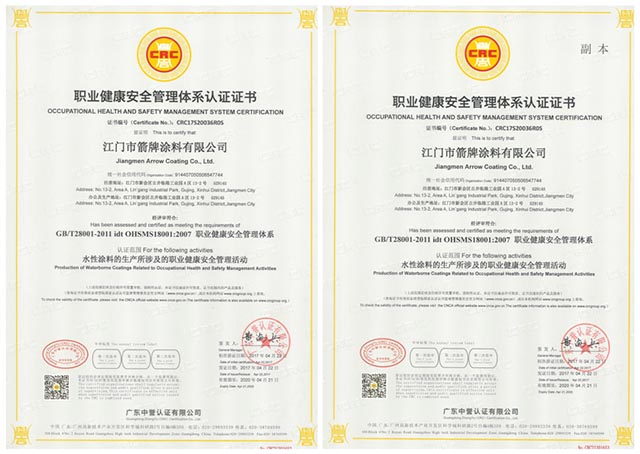 2017年4月22日,广东中誉认证中心正式确认江门市箭牌涂料有限公司通过最新版ISO9001质量管理体系、ISO14001环境管理体系和OHSMS18001职业健康安全管理体系的审核认证并颁发相关证书。我们相信,三大国际管理体系的建立和贯彻运行,将有助于公司不断提升现代化企业管理水平,在市场竞争中树立良好的企业形象和信誉,对公司的长远发展具有历史性重要意义!